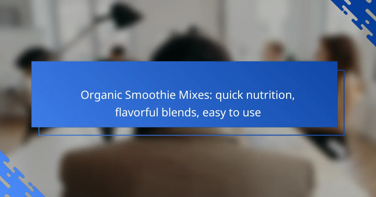Organic smoothie mixes offer a quick and nutritious way to incorporate fruits and vegetables into your diet. They provide a convenient option for those seeking flavorful blends that are easy to prepare and packed with essential nutrients.